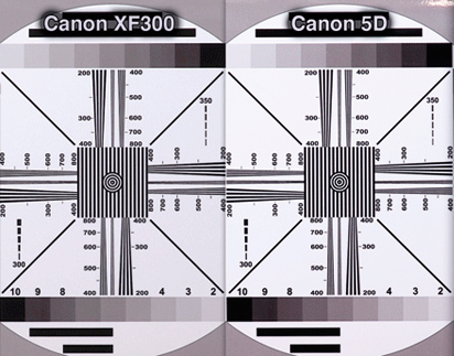 Также хочу привести пример сравнения разрешающей способности малых камкордеров Canon XF105 и Sony NX5, поскольку данные модели находятся в одной ценовой категории и обладают схожими параметрами и функционалом.
