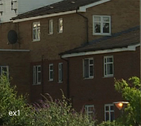Оценить качество детализации каждой камеры можно довольно легко, посмотрев на кирпичную стену: в кадре, снятом на XF300, мы отчетливо видим кирпичную кладку вместе в цементными прослойками, в кадрах, снятых на EX1, кирпичная кладка читается достаточно плохо.