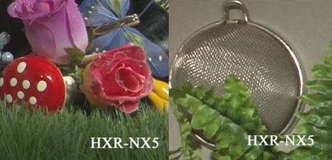 Также можно видеть, что четкость изображения с точки зрения проработки мелких деталей в обоих случаях визуально одинаковая, несмотря на то, что в камкордерах Canon XF100/105 используется всего лишь один сенсор формата FULL HD, а в камкордере Sony Z5 — три сенсора с количеством активных пикселей по вертикали 1080 (по горизонтали количество пикселей меньше чем 1920). Цветопередача, опять же несмотря на использование одного сенсора с шаблоном Байера, в камкордере XF100, как можно наблюдать, не искажается.