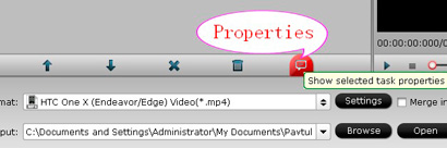 4. Для редактирования настроек конвертации (выбор звуковой дорожки, параметры разрешения, битрейта и т.д.) нужно нажать кнопку “Properties” (“Свойства”).